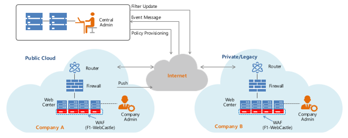 Web hacking attack detection and blocking of F1Security WEBCastle is handled inside the web server. Also, for web hacking protection, we do not pass or store any customer web service traffic in our cloud infrastructure, so no web traffic information is leaked from our infrastructure.